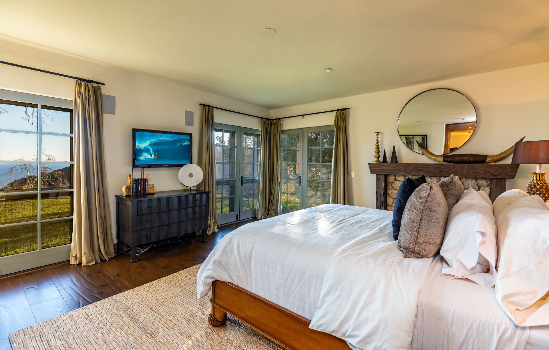 One of the most private ocean and mountain-view estates in central Malibu, this magnificent property is sited on over five park-like acres. A long, gated driveway and motor court lead to the five-bedroom main house with a dramatic two-story living room that opens to majestic grounds. Located off an exceptional chef's kitchen, a voluminous family room overlooks mesmerizing ocean views, lined with French doors that foster a harmonious flow to romantic al fresco entertaining spaces, including a fireplace and bbq area. The master suite wing features dual walk-in closets and a private, enclosed balcony, all with beautiful ocean views. Landscaped grounds and pathways join the main residence with a gym/pool house, grassy lawns and two ocean-view pools, including a regulation lap pool. Complete with a detached guest house, three-car garage and La Costa Beach Club and Tennis rights, this serene residence is just moments to the world-renowned beaches, shops and restaurants of Malibu.
